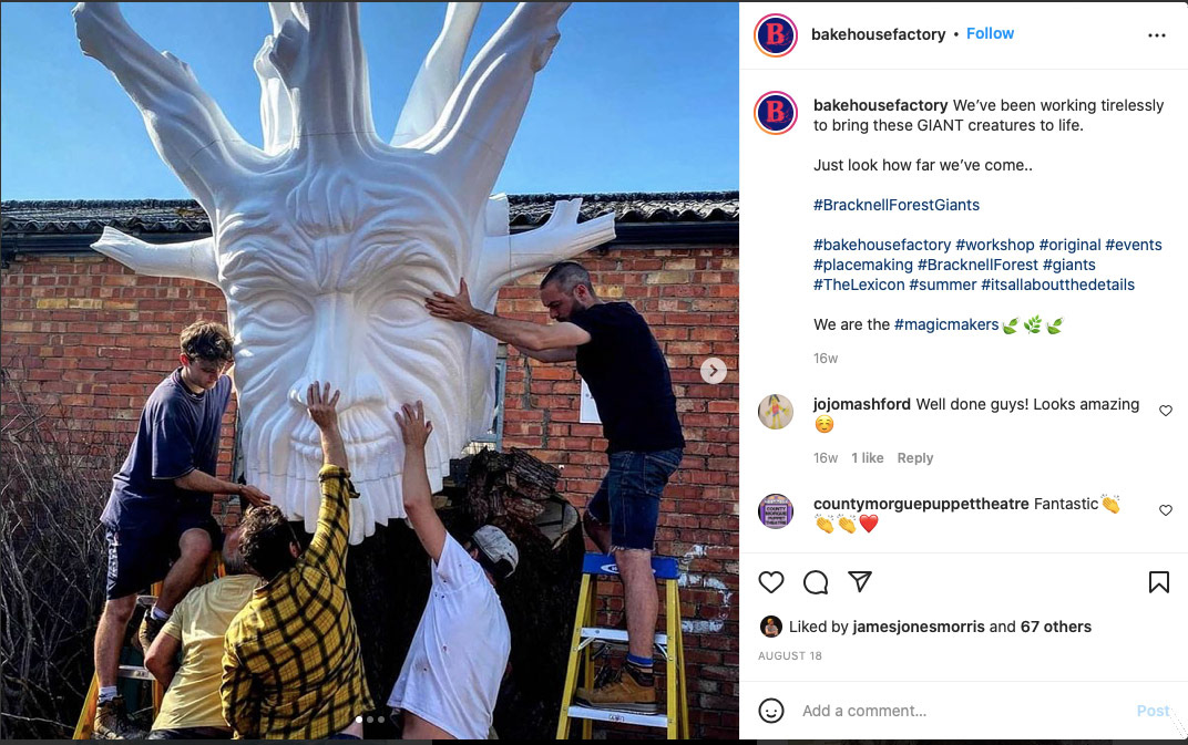 Working as a sculptor and scenic artist for these giant woodland sculptures commissioned by Bracknell Forest Council for the Lexicon shopping centre in Bracknell in 2021.