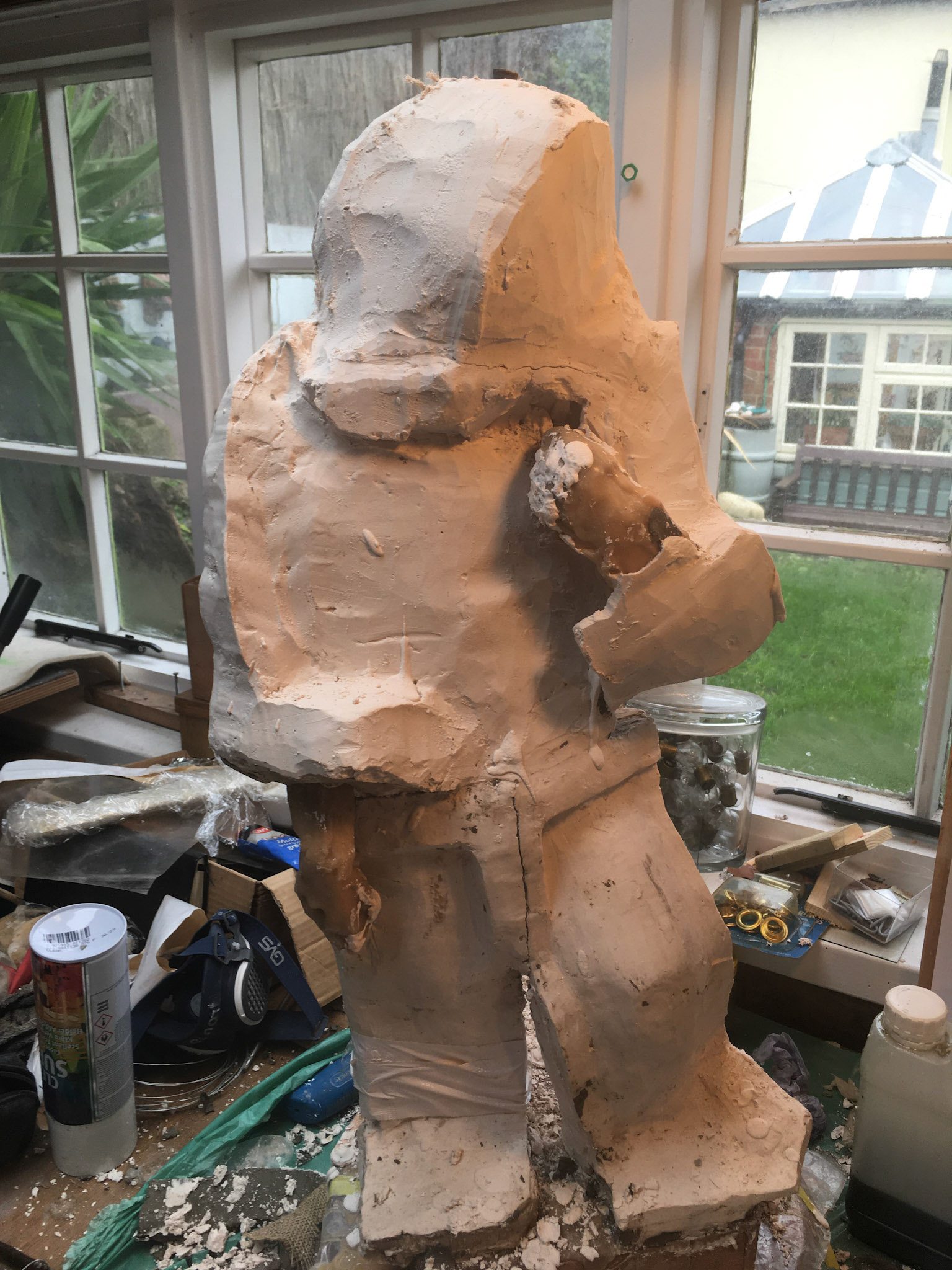 My terracotta reproduction of Michelangelo's 'David' needed to be cast. The mould was created by layering the sculpture in several layers of fast setting Polyurethane Rubber. The more obvious choice being silicone but being a student I opted to use a cheaper alternative. The rubber was then built up around the edges to create seams, and then covered in several shaped sections of plaster to create the mould jacket or mother mould. In total the mould consisted of 6 sections of the internal rubber and a 12 section mother mould. Leaving clay residue inside the rubber mould before casting in plaster was an artistic choice to create patina. I have also left the seam-lines on the sculpture to highlight the mould shape, as this project was an exercise in process.